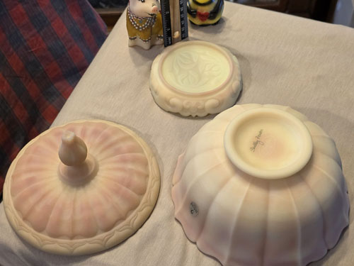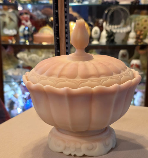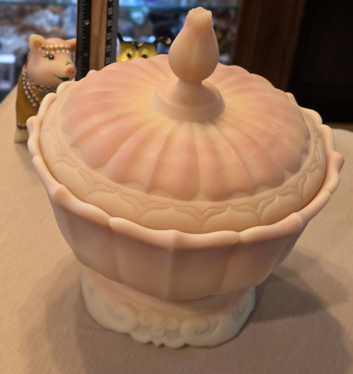 Fenton's Beautiful 3 piece Burmese Ogee Covered Dish.